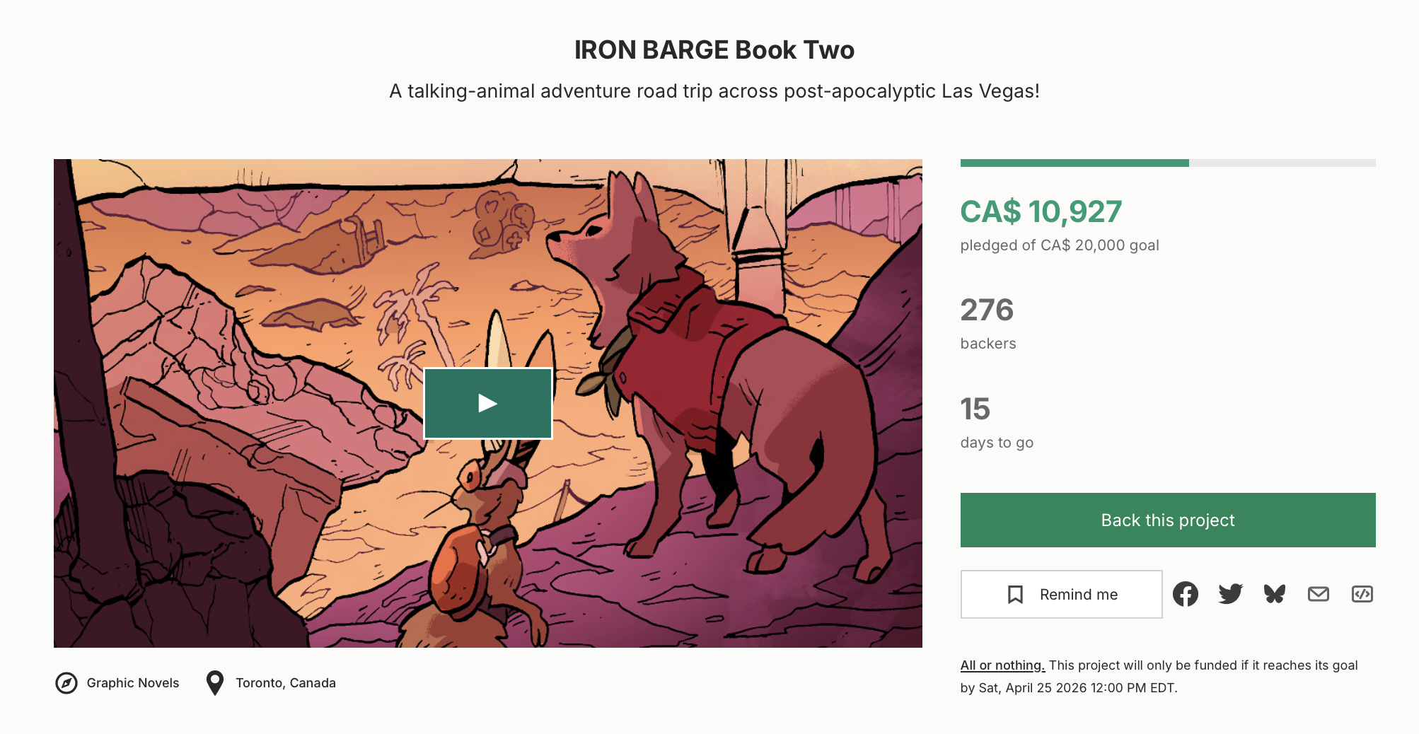 THE IRON BARGE is 50% funded!! I am so dang proud of this project and our team, and can't wait to share the book with ya'll. There's just 15 days left to back the campaign! Don't miss your chance to get your copy and help make this book a reality, check out the kickstarter video today!