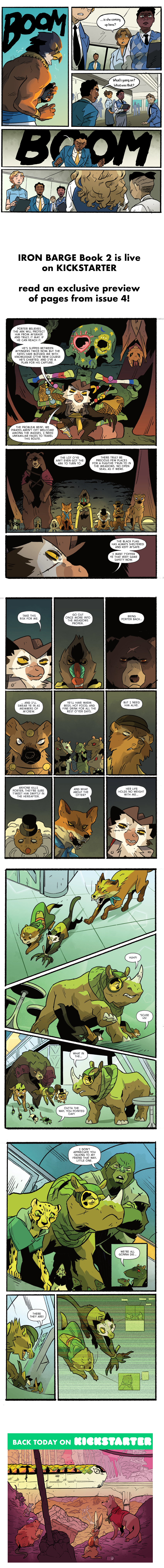 IRON BARGE Book 2 has passed it's first week and is nearly 40% funded!! We just got these pages from our letterer, and it's always so exciting once the lettering comes in. Because then it feels like a real comic!